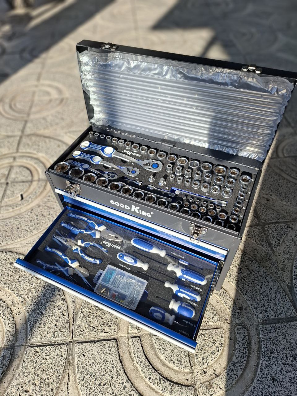 جعبه بکس 408 پارچه گودکینک مدل 408P اصلی، انتخابی بینظیر برای حرفهایها! این مجموعه کامل با کیفیت بالا و دوام فوقالعاده، تمامی نیازهای تعمیراتی شما را برآورده میکند. طراحی ارگونومیک و دستههای ضد لغزش برای راحتی بیشتر. همین حالا خرید کنید و تجربهای متفاوت از ابزارآلات را رقم بزنید!